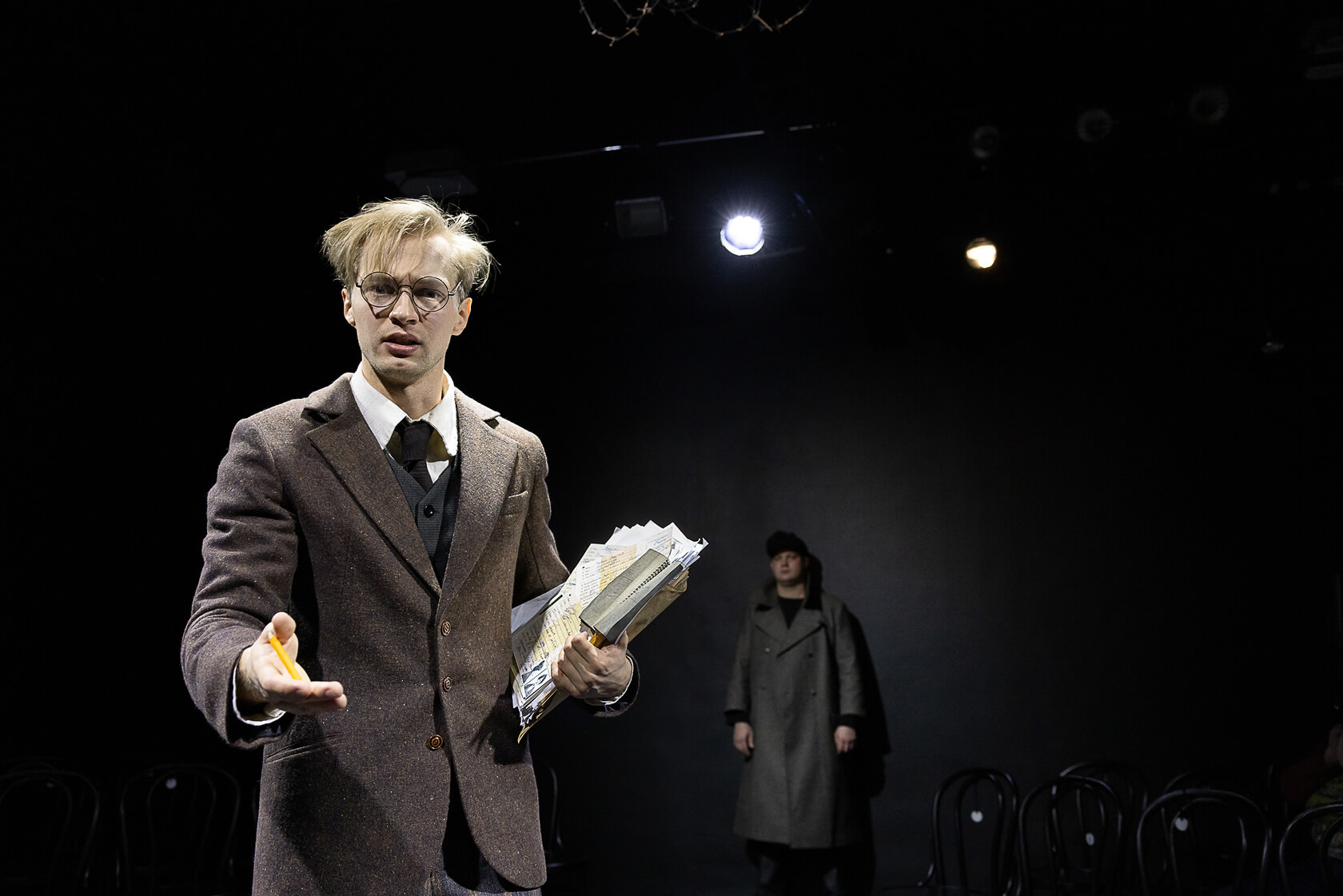 В спектакле «Кроткая» Саратовский государственный академический театр драмы им. И. А. Слонова (режиссер Ирина Керученко) обратился к небольшой повести Ф. М. Достоевского, превратив ее в настоящий семейный психологический триллер. Театральное объединение «Архив» покажет спектакль «86 мартобря» режиссера Оксаны Погребняк, чей эскиз выиграл конкурс «Перспектива» в прошлом году. Это современная интерпретация классической истории о гоголевском «маленьком человеке» — Поприщине, который отчаянно ищет свое место в хаосе безумного мира. Спектакль покажут два раза — в Великом Новгороде и Старой Руссе.